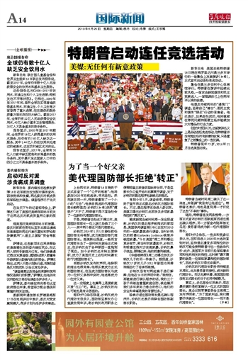 为了当一个好父亲美代理国防部长拒绝“转正”