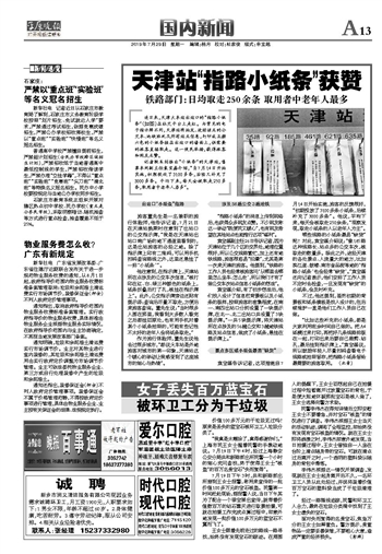 天津站“指路小纸条”获赞铁路部门:日均取走250余条 取用者中老年人最多