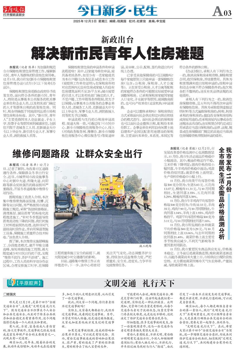 本报讯 (记者陈卓)为加强和规范全市保障性租赁住房管理工作,缓解新市民、青年人等群体的阶段性住房困难,12月1日,我市印发《新乡市保障性租赁住房管理办法(试行)》(以下简称《办法》)。