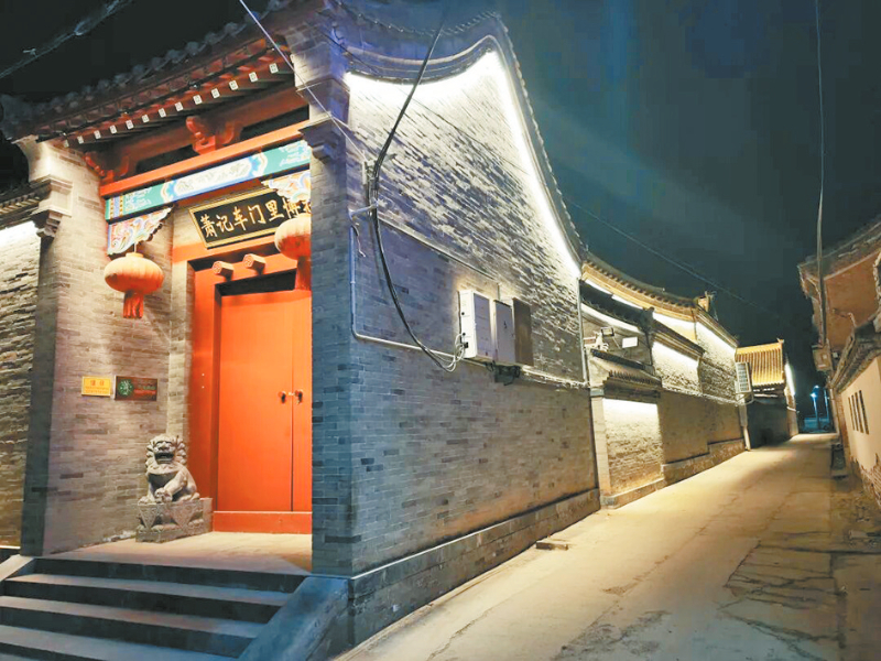 漫步夜晚的耿村,村头古色古香的牌楼被暖黄色灯带勾勒出轮廓,尽显传统文化韵味;村内外的树木缠绕着五彩灯球,微风拂过,灯光摇曳生姿,宛如童话世界;沿街柱子上投射的彩灯画循环流转,兼具观赏性与灵动感;古色古香的小游园里,廊亭、石凳被柔光灯饰包裹,将村落装扮得如梦似幻。