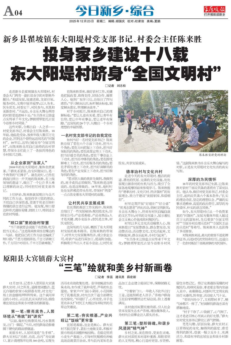 对陈来胜来说,最大的荣誉不是奖牌和证书,而是村民的笑脸和信任,这道出了一名农村基层干部最真挚的为民情怀。