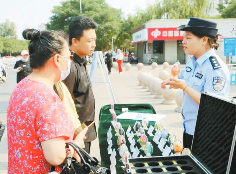 本报讯 (记者申长明)6月26日一早,市体育中心广场周边悬挂的禁毒横幅和摆放的彩色宣传展板格外引人注目。市民纷纷驻足观看,领取印有禁毒内容的彩页、折扇、环保购物袋等物品,时不时与民警互动交流。为增强广大市民识毒防毒拒毒意识和能力,营造全社会禁毒的浓厚氛围,在第36个“国际禁毒日”到来之际,我市组织开展了以“健康人生绿色无毒”为主题的全民禁毒集中宣传活动。“宣传材料发了多少份,与群众互动怎么样?”当日上午,副市长、市禁毒委主任、市公安局局长朱东亚来到活动现场,实地查看、了解各宣传点位工作开展情况。其间,朱东亚一行与现场居民亲切互动,向他们发放禁毒宣传彩页,宣讲安全防范常识,并一起在禁毒拒毒承诺墙上签名,共同表达了向毒品宣战的决心和信心。
