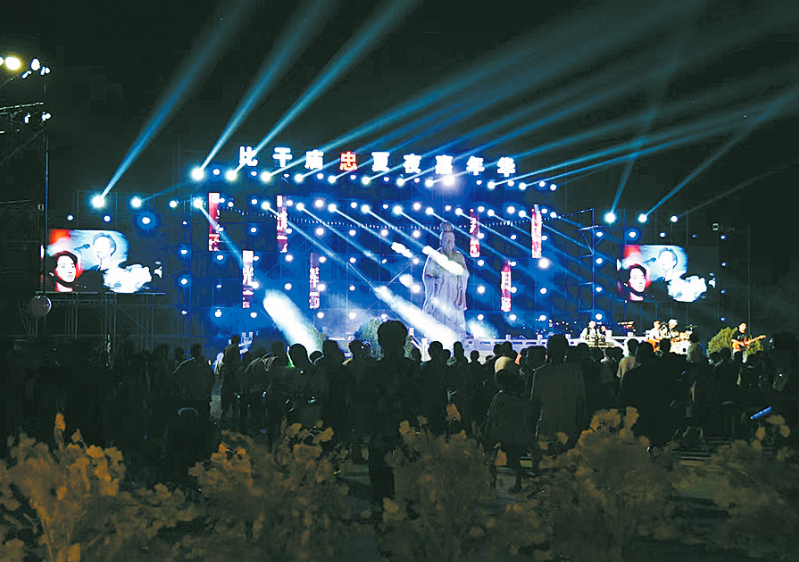 本报讯 (记者张延)7月9日,卫辉市举办的“忠”夏夜嘉年华活动在比干庙广场拉开帷幕。在开幕式上,汉服走秀、歌舞表演等精彩节目将现场气氛推向高潮。此次活动,除了文艺表演、啤酒烧烤小吃外,还有占地80亩的灯光秀,吸引了大量游客前来观赏游玩。