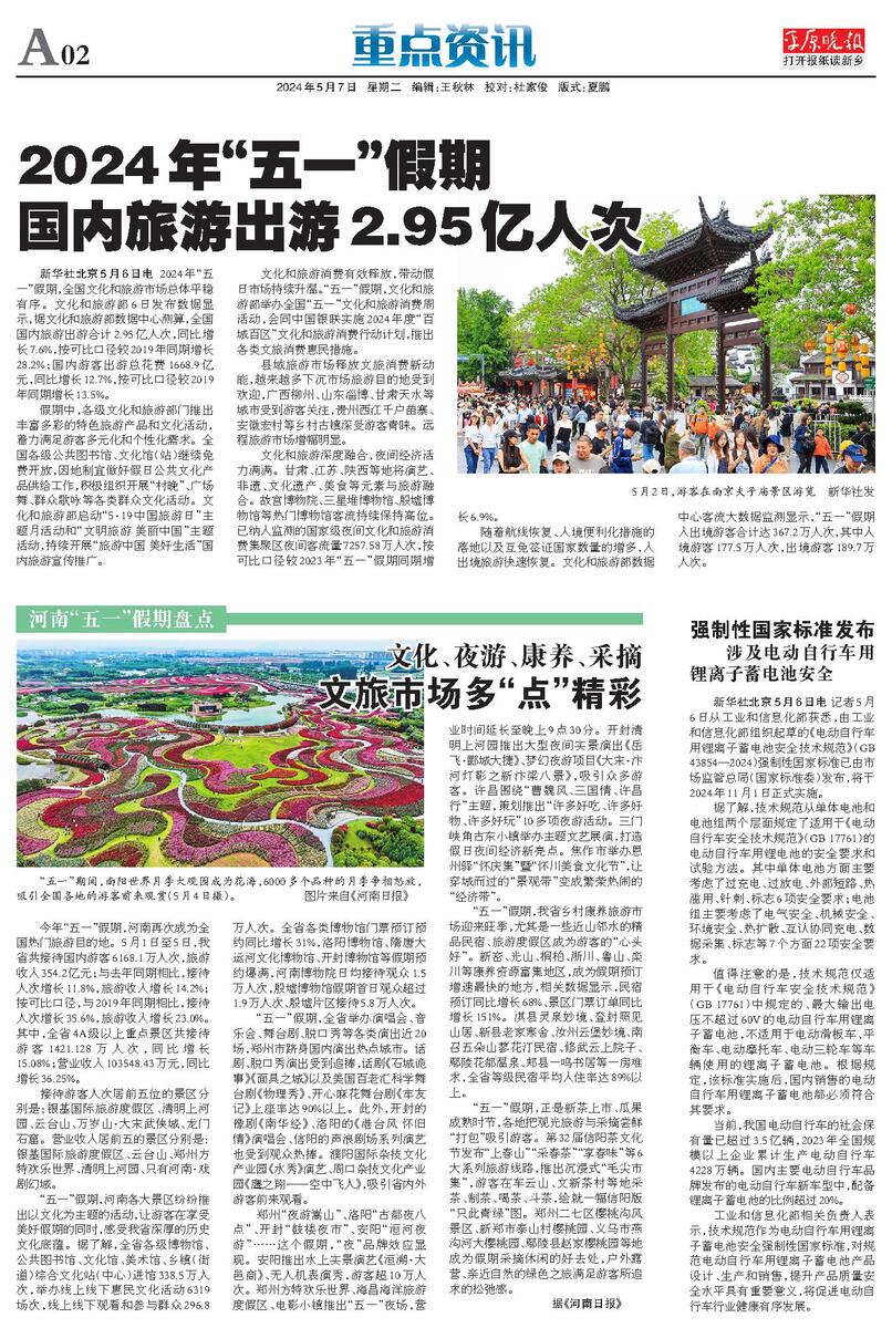 文化和旅游消费有效释放,带动假日市场持续升温。“五一”假期,文化和旅游部举办全国“五一”文化和旅游消费周活动,会同中国银联实施2024年度“百城百区”文化和旅游消费行动计划,推出各类文旅消费惠民措施。