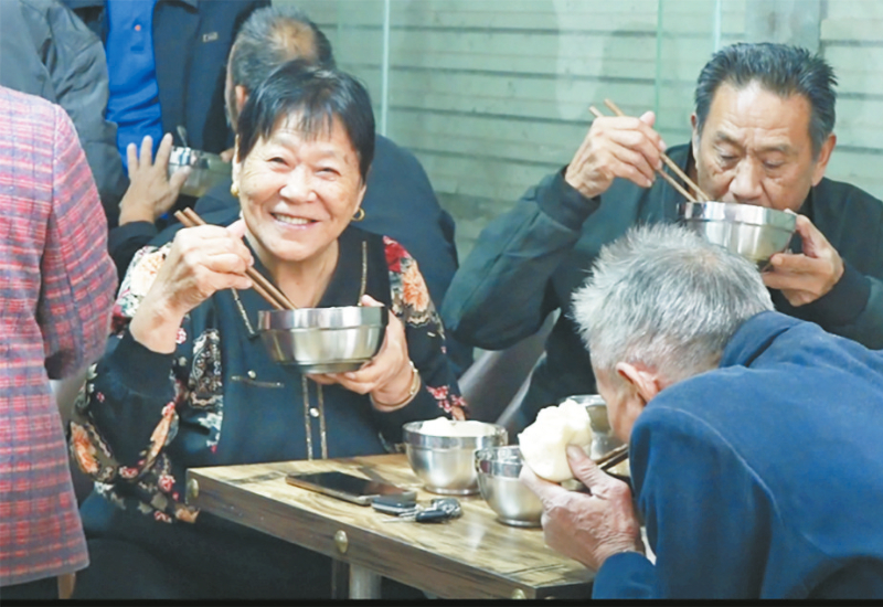 当日中午时分,东大阳堤村助老食堂里一派热闹景象。工作人员帮助老人们打好饭菜,再一一送上餐桌,老人们则三五成群坐在一起,一边吃着可口的饭菜,一边开心地唠着家常。