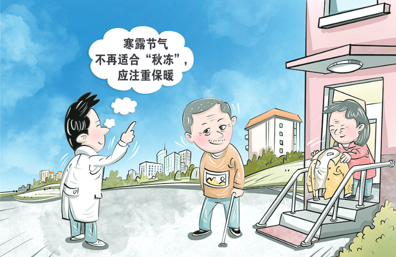 中国科学院院士、中国中医科学院广安门医院主任医师仝小林说,自古民间就有“秋燥”的说法。因为到了秋天之后,气温下降,空气变得干燥,容易出现皮肤发干、眼睛发涩、口干咽干等各种症状。这就需要养阴和润燥。首先是多喝水,及时补充水分。另外,还要注意保暖。所谓“寒露脚不露”,就是寒凉已经显露了,足部要注意保暖的意思。中医有很多方法御寒,全身都比较怕冷的人群,可以用艾灸灸关元、气海、足三里等穴位,或用暖水袋外敷肚子、腰、腿等部位。
