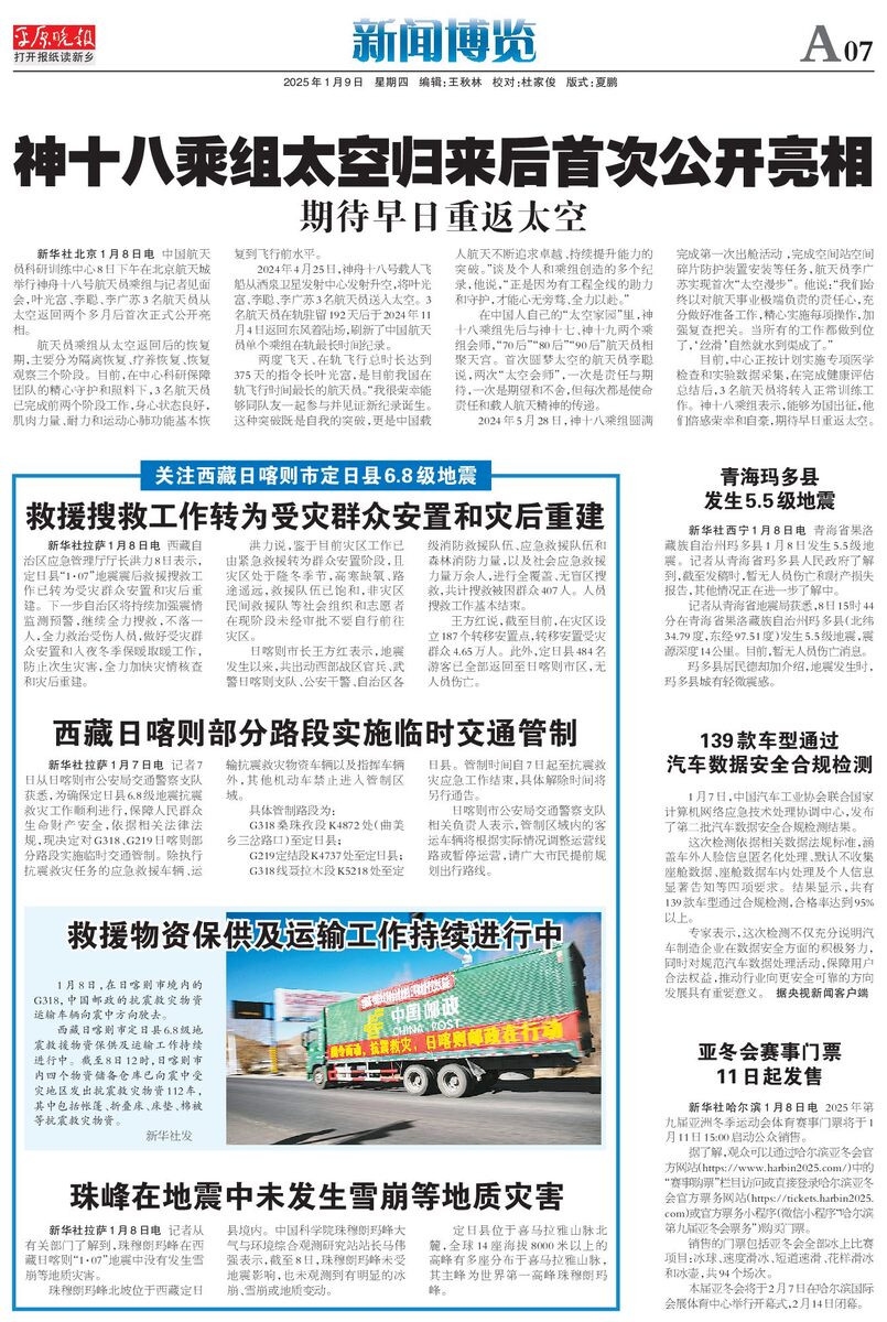 神十八乘组太空归来后首次公开亮相