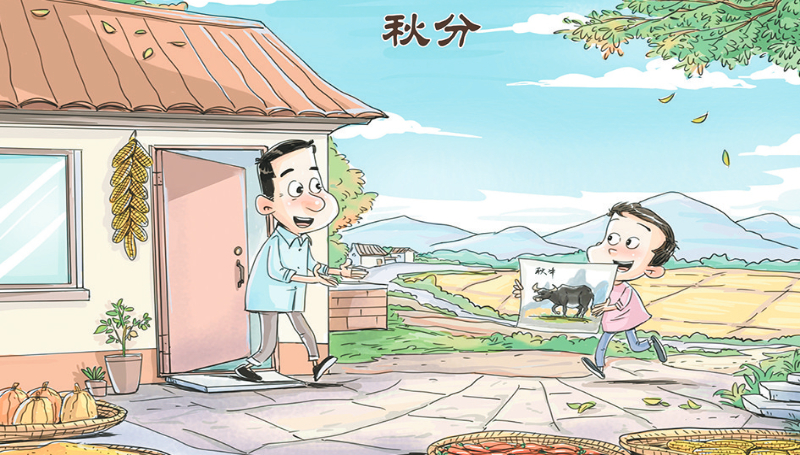9月23日迎来秋分节气。秋分时很多传统民俗,也都饱含期盼风调雨顺、庄稼丰收的意思,比如,祭月、竖蛋、送秋牛图等。 新华社发王鹏作
