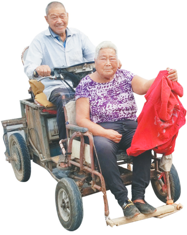 本报讯 (记者刘志松)9月26日,在卫辉市安都乡施平村的乡间小路上,记者看到一道温暖而特别的风景:78岁的李振峰老人开着一辆自制(改装)的电动四轮车,载着与他同岁、因脑梗偏瘫的老伴周凤缓缓而行(如图)。