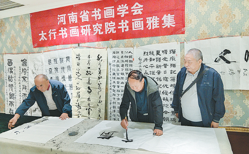 本报讯 (记者李蕊)金秋送喜,墨香致远。9月27日,在国庆节到来之际,河南省书画学会太行书画研究院联合开封汴梁书画研究院在我市九州宾馆举办了一场书画文艺交流活动,他们用笔墨丹青和文艺表演抒发家国情怀,共贺盛世华诞。