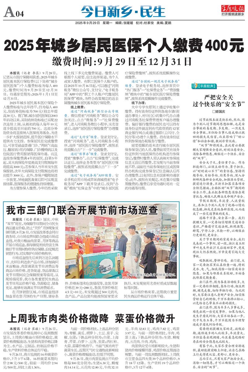 2025年城乡居民医保个人缴费400元