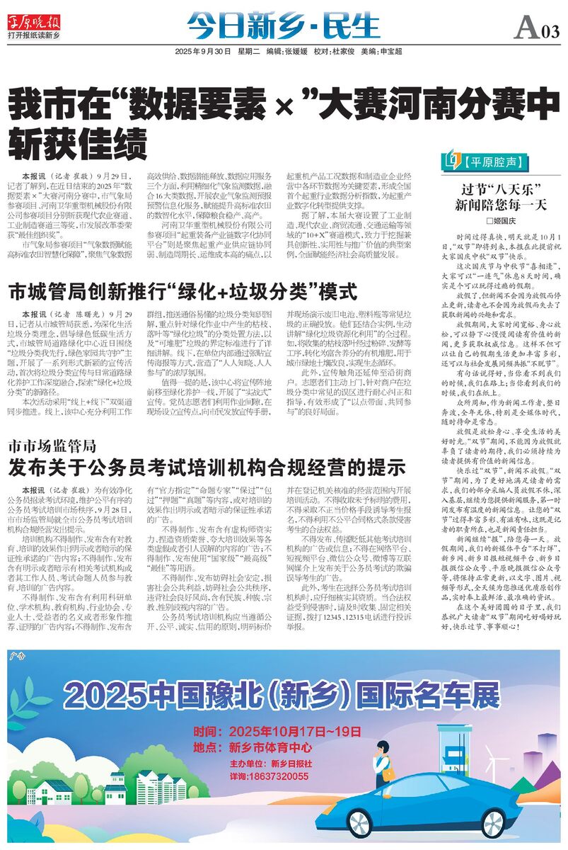 新闻继续“报”,陪您每一天。放假期间,我们的新媒体平台“不打烊”,新乡网、新乡日报短视频平台、新乡日报微信公众号、平原晚报微信公众号等,将保持正常更新,以文字、图片、视频等形式,全天候为您推送优质原创作品,实时奉上最鲜活、最准确的资讯。