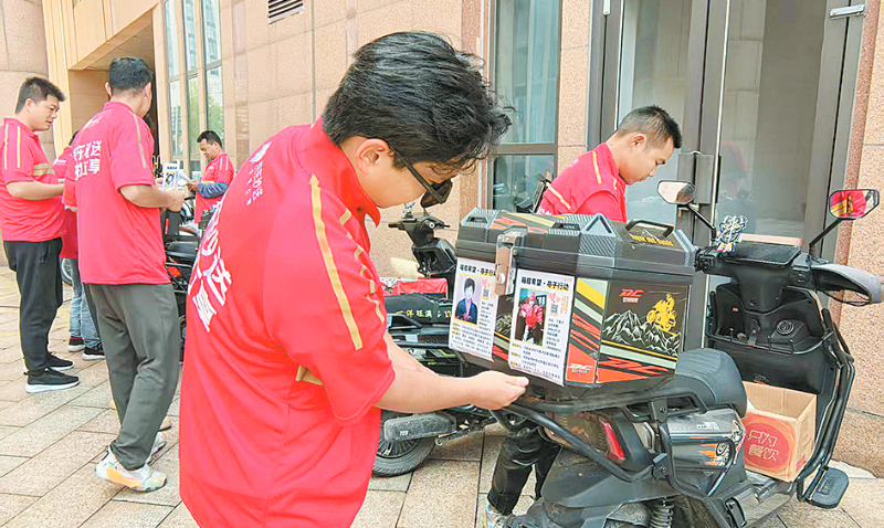 随后,外卖骑手们郑重地将精心制作的寻亲启事,粘贴在各自外卖配送箱的醒目位置(如图)。这些平日里穿梭不息的外卖箱,此刻化身成为“移动寻亲信息站”,将跟随着骑手的脚步,深入街头巷尾、商圈楼宇,极大地拓展寻亲信息的传播范围与触达效率,让每一次配送都可能成为点亮团圆希望的线索传递。