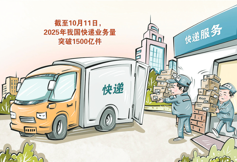 新华社北京10月12日电(记者 叶昊鸣)记者12日从国家邮政局获悉,根据国家邮政局监测数据显示,截至10月11日,2025年我国快递业务量突破1500亿件,比2024年提前37天。
