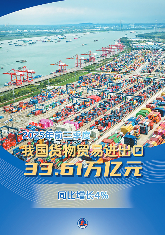 10月13日,海关总署新鲜出炉的外贸三季报显示,2025年前三季度,我国货物贸易进出口33.61万亿元,同比增长4%,比前8个月加快0.5个百分点。