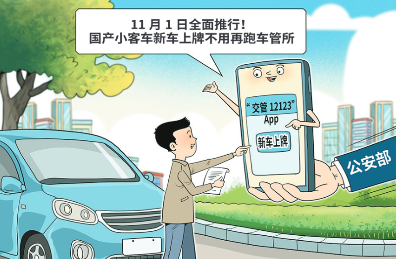 公安部10月14日在京召开新闻发布会介绍,11月1日起在全国全面推行国产小客车新车上牌“一件事”服务,推动车辆销售发票、购置税、保险等信息共享核查,实现国产小客车新车上牌全业务数字化办理,群众免予提交纸质材料。