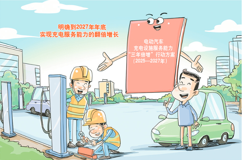 缓解“里程焦虑”出实招。国家发展改革委、国家能源局等部门近日印发《电动汽车充电设施服务能力“三年倍增”行动方案(2025—2027年)》,明确到2027年年底,实现充电服务能力的翻倍增长。
