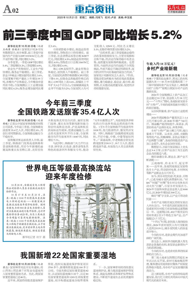 前三季度中国GDP同比增长5.2%