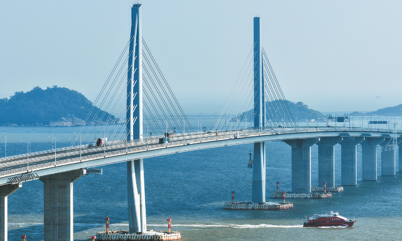 “北上”客流同样大幅增长。港珠澳大桥的开通,让香港到珠海、澳门的车程从3个小时缩短至约45分钟。2023年“澳车北上”“港车北上”政策正式落地实施后,“北上”尤其自驾“北上”港澳居民数量出现大幅增长。2023年,港珠澳大桥珠海公路口岸日均车流量约9000辆次,2025年至今日均已超1.8万辆次。客船驶过港珠澳大桥九洲航道桥(10月19日摄,无人机照片)新华社发