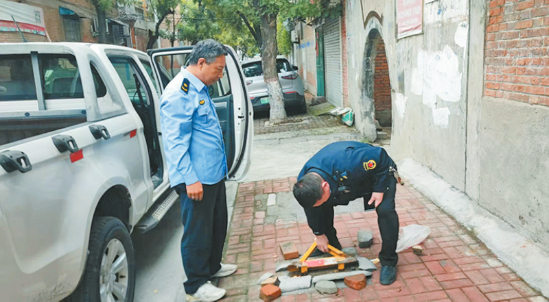 幸福街作为辖区老旧街道,道路宽度仅4米至5米,且未规划公共停车位。随着居民车辆保有量增加,部分车主为抢占停车空间,在人行道上私自安装金属地锁。这种行为不仅挤占行人通行空间,还导致轮椅、婴儿车等无法正常通行。为彻底摸清情况,城关镇综合执法大队联合社区工作人员开展“拉网式”排查,逐户登记地锁安装位置、数量及产权人信息,建立详细问题台账,为后续整治工作有序推进奠定坚实基础。