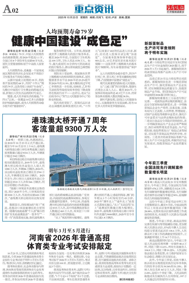 港珠澳大桥开通7周年 客流量超9300万人次