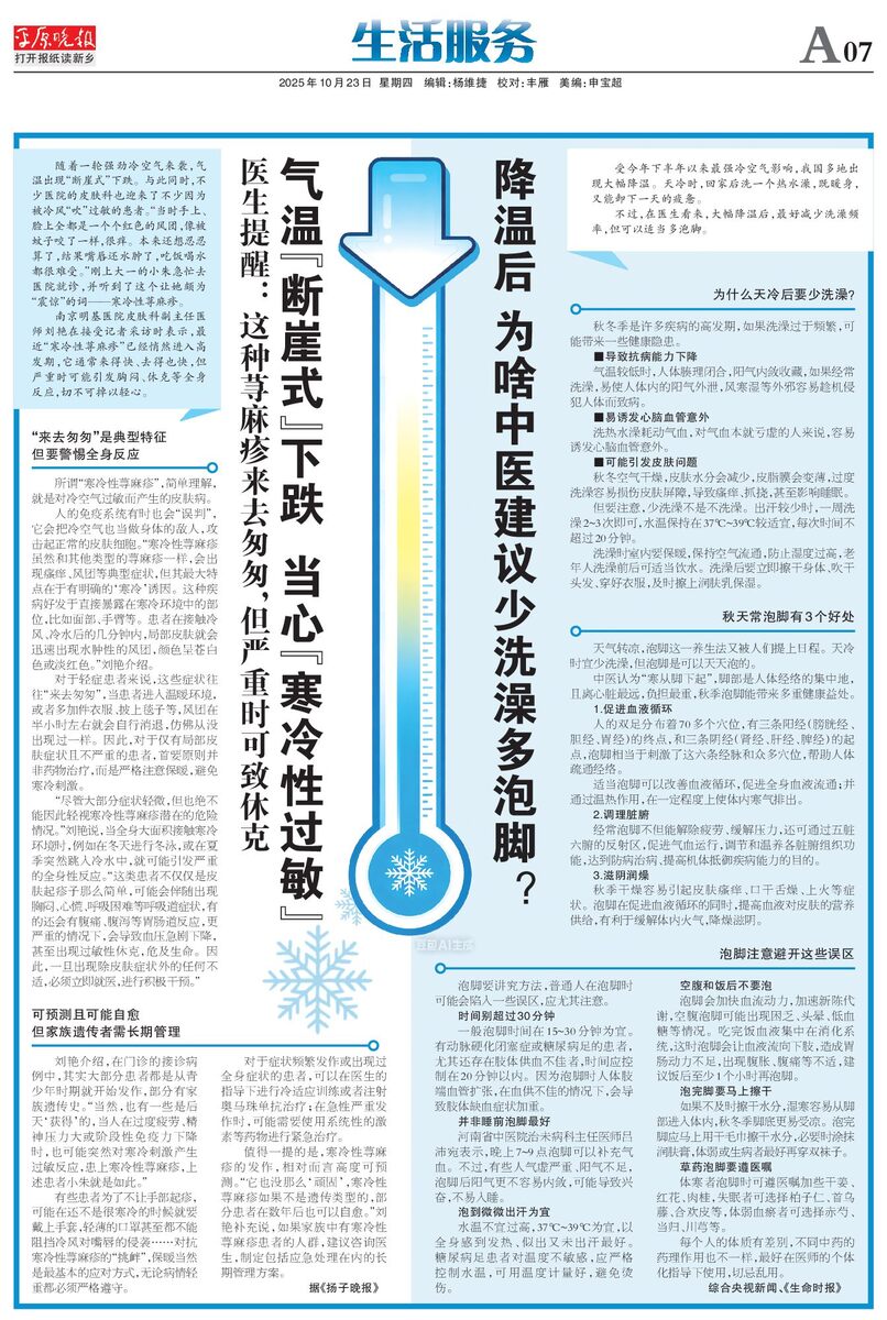 气温『断崖式 』下跌 当心『寒冷性过敏 』