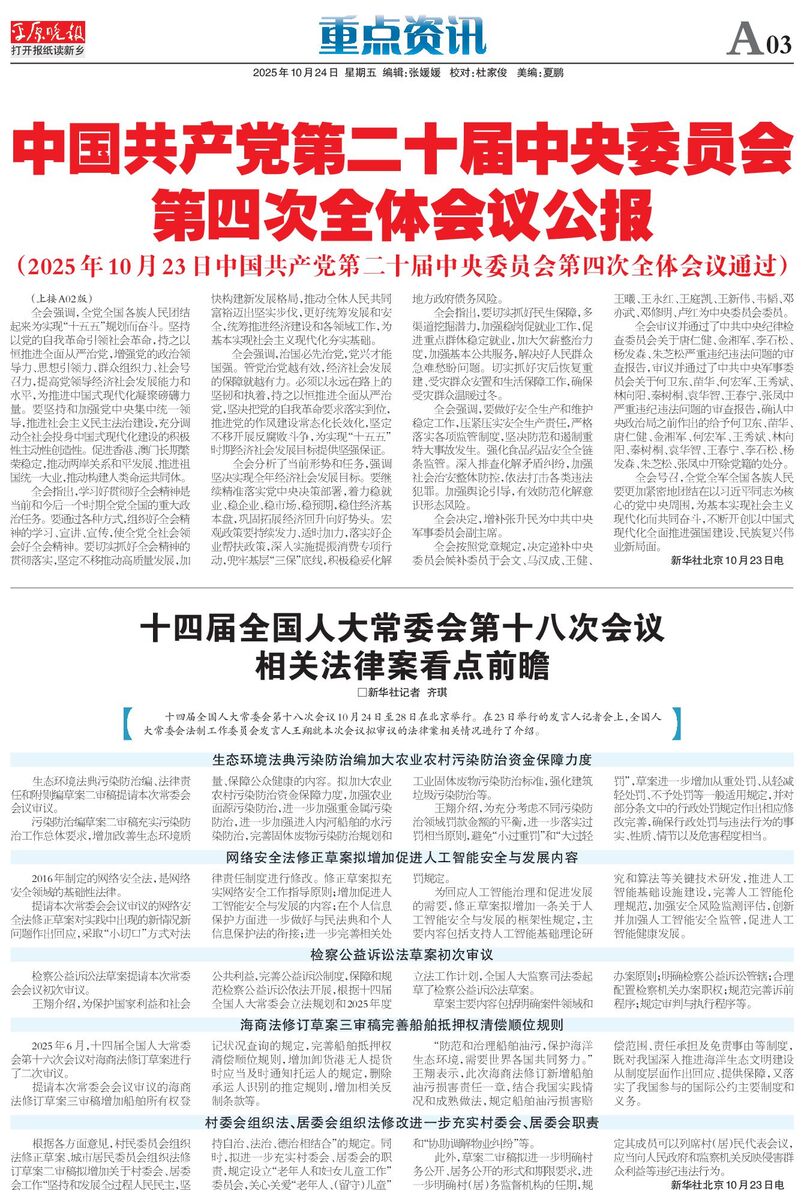 中国共产党第二十届中央委员会第四次全体会议公报