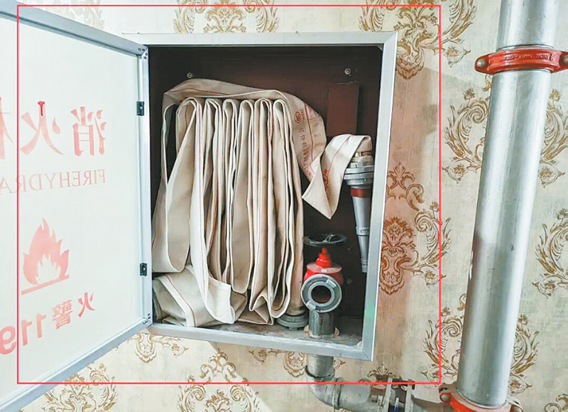 位于新乡经济技术开发区经三路与纬三路交汇处东500米路南的盛源快捷酒店存在以下火灾隐患:室内消火栓无水(如图1);五楼走廊西侧一处应急照明灯损坏。