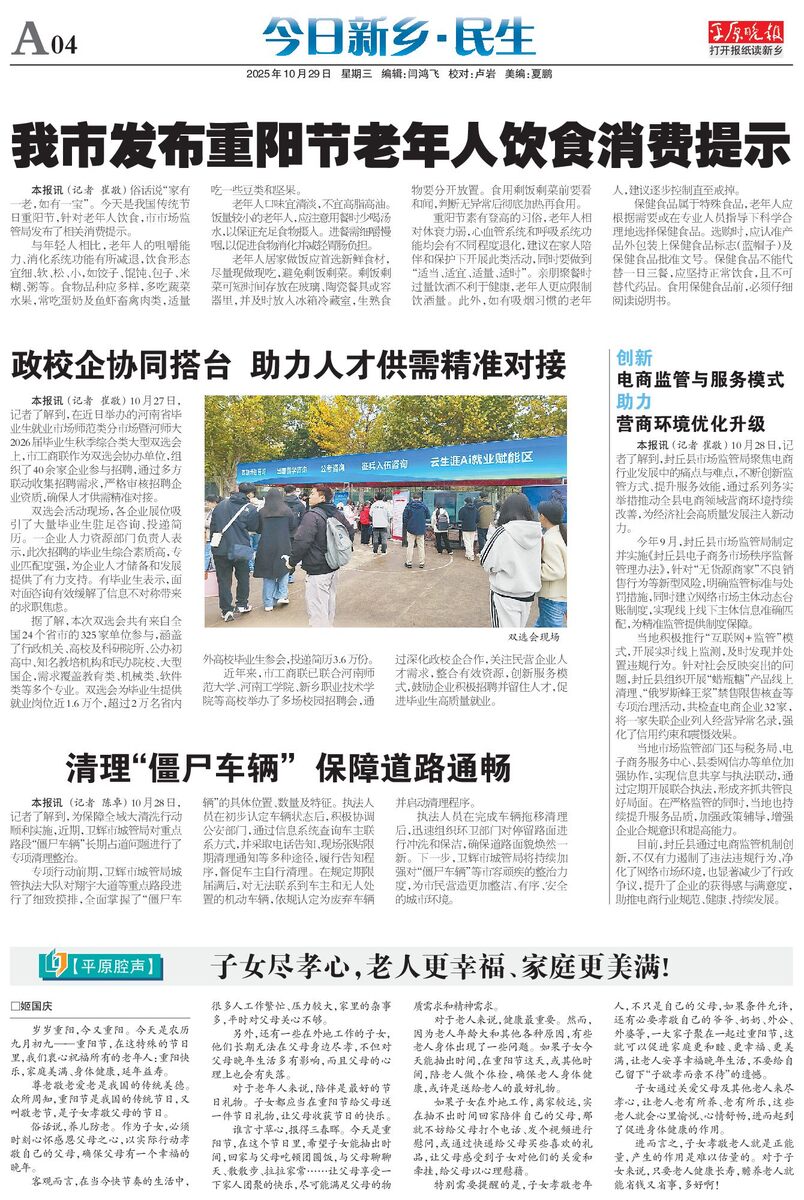 我市发布重阳节老年人饮食消费提示