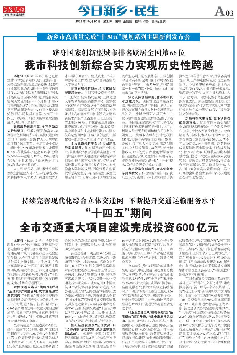 “十四五”期间全市交通重大项目建设完成投资600亿元