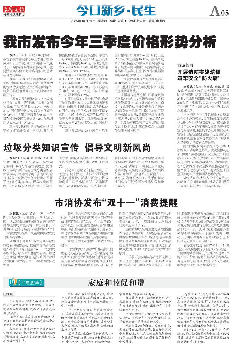 我市发布今年三季度价格形势分析