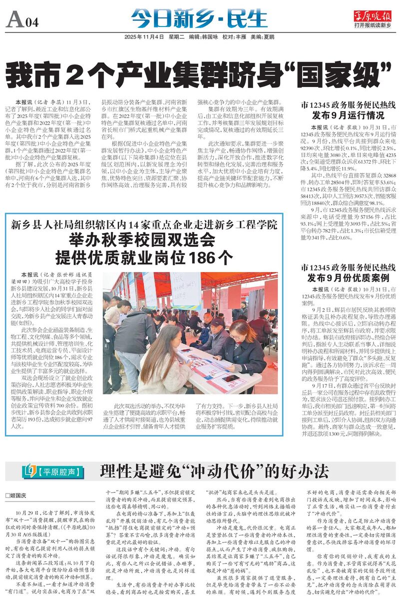 举办秋季校园双选会 提供优质就业岗位186个