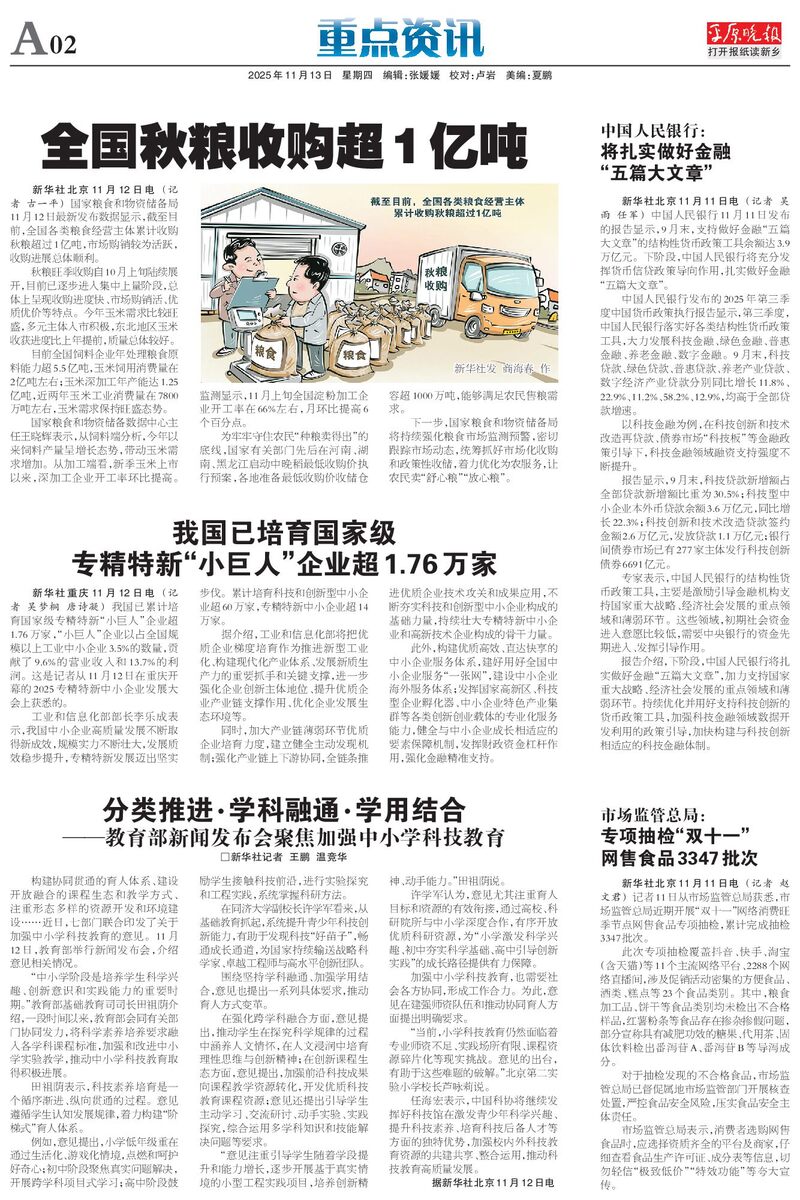 全国秋粮收购超1亿吨