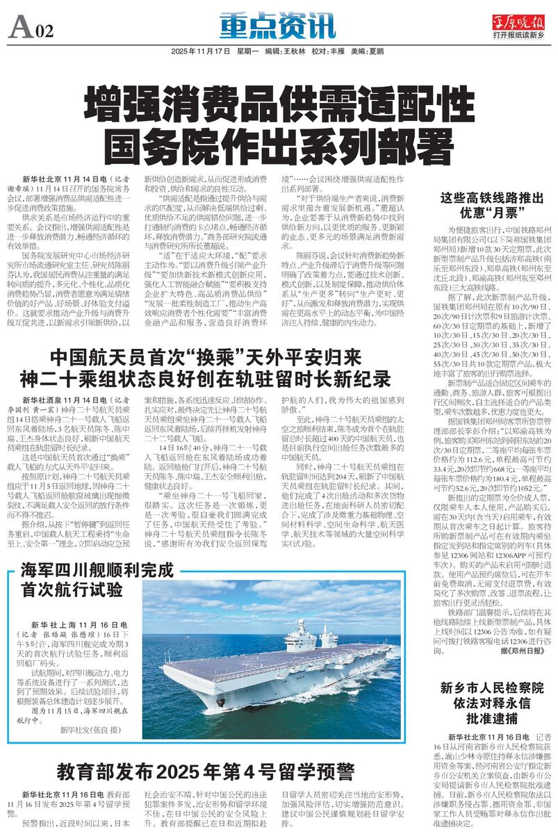 中国航天员首次“换乘”天外平安归来 神二十乘组状态良好创在轨驻留时长新纪录