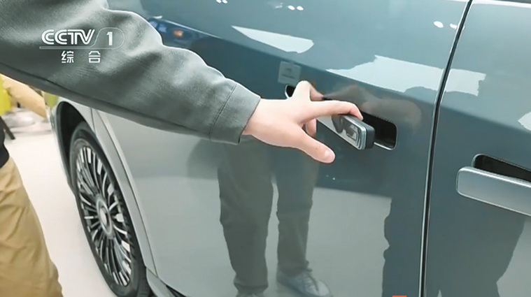 记者在北京一家商场汽车销售区域走访发现,目前市场上的隐藏式车门把手主要分为“杠杆式”和“电控式”两类。“杠杆式”通过物理按压弹起,操作依赖机械结构;“电控式”则借助电机驱动或触控感应,解锁时自动顶出,科技感更强。