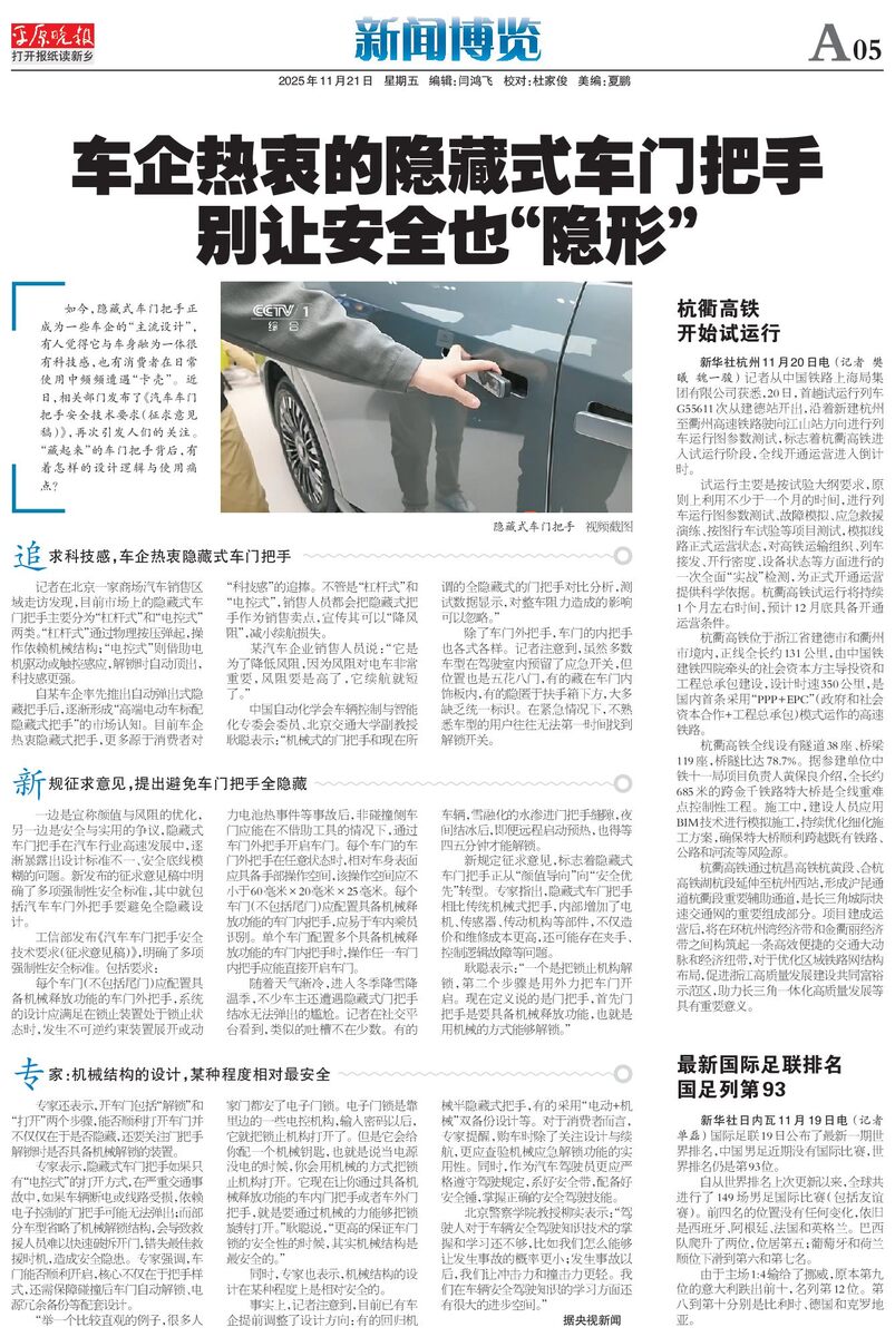 车企热衷的隐藏式车门把手别让安全也“隐形”