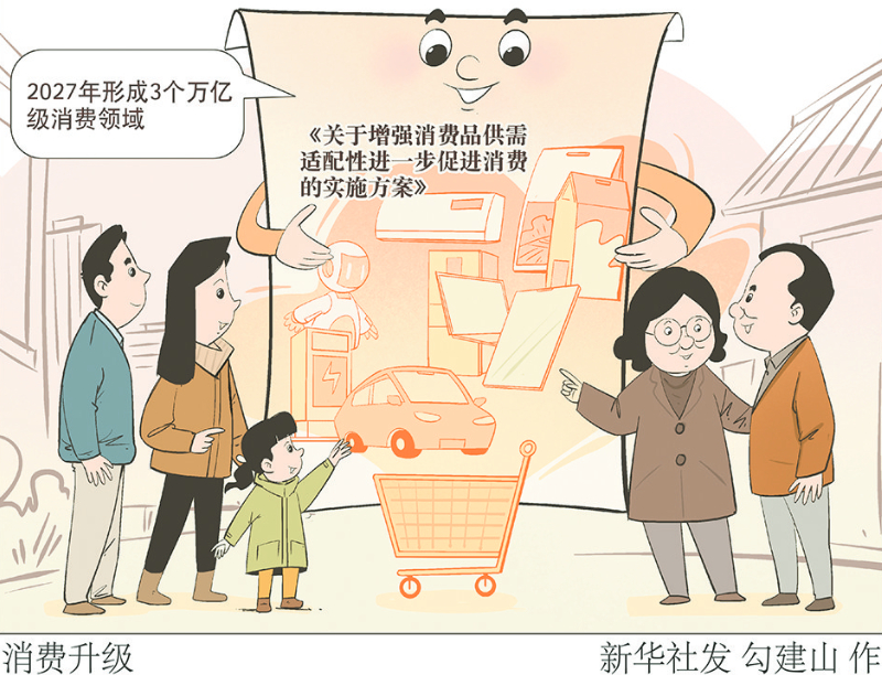 新华社北京11月26日电(记者唐诗凝)记者11月26日获悉,工业和信息化部等六部门联合印发《关于增强消费品供需适配性进一步促进消费的实施方案》,提出到2027年,消费品供给结构明显优化,形成3个万亿级消费领域和10个千亿级消费热点,打造一批富有文化内涵、享誉全球的高品质消费品。