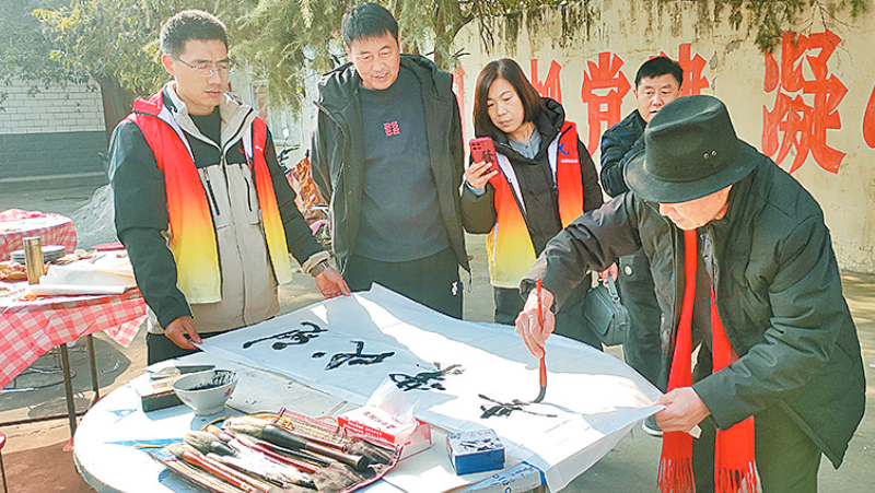12月9日,由河南省书画学会太行书画研究院的书画家组织的“文化下乡送瑰宝,书画艺术润乡村”活动走进辉县市高庄乡西池头村。书画家们现场挥毫泼墨,受到村民的好评。