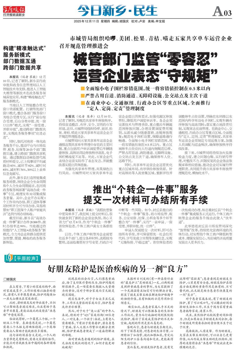 城管部门监管“零容忍” 运营企业表态“守规矩”