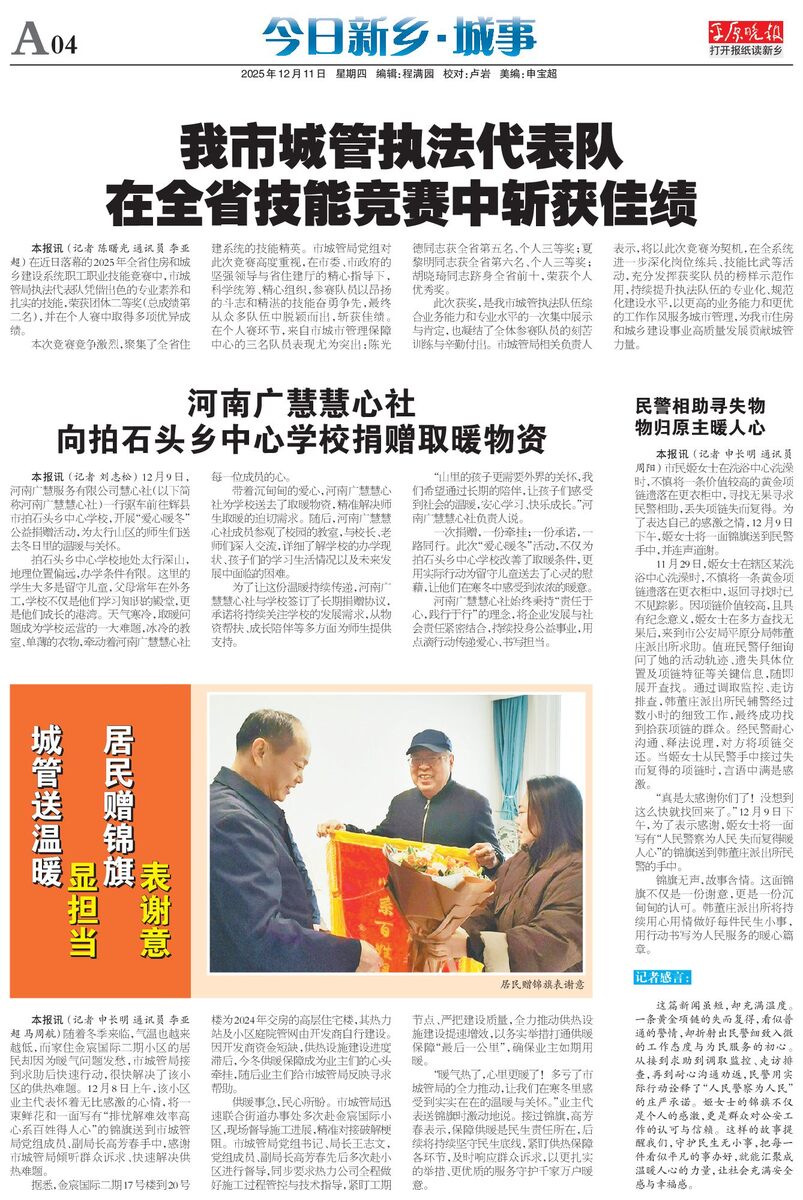 城管送温暖 显担当 居民赠锦旗 表谢意