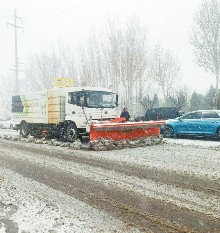 在除雪保畅通工作中,除雪作业以机械为主、人工为辅,采用“多车联推”“一机双配”“人歇机不停”等除雪方式,并及时在急弯、陡坡、桥面等重点路段抛撒融雪剂和防滑料,防止路面结冰,确保在最短时间内清除路面积雪。