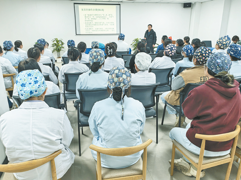 本报讯 (记者刘志松)12月12日,新乡市第二人民医院(以下简称市二院)急诊科医务人员受邀走进新乡中诺口腔医院(以下简称中诺口腔),开展院前急救知识与海姆立克急救法专项培训,通过“理论+演示+实操”的模式,为中诺口腔医务人员带来一场干货满满的急救技能“充电课”。