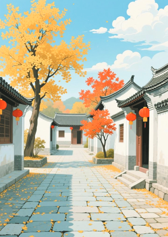 大巴车行驶了20多分钟,到达大浪口民俗馆。一下车,学生们兴奋异常,瞬间陶醉......厚重的古村落此时已被秋色覆盖。脚下的青石板路延伸远方,似无言的诉说。我们的学生干部则边走边介绍两边爱国主义展板中的内容,张老师讲解长垣的历史......声音落在两旁尽是浓郁豫北特色的古村落传统建筑——四合院上,三面房,砖瓦过道。
