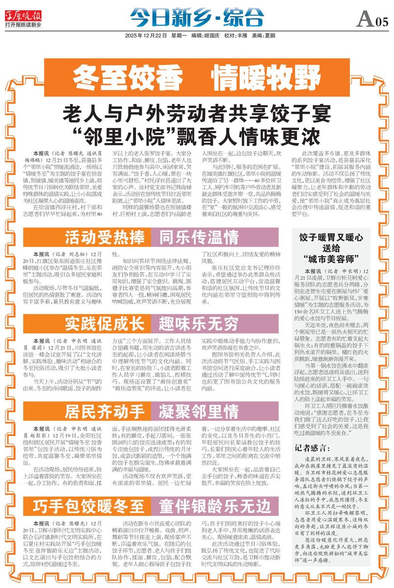 老人与户外劳动者共享饺子宴 “邻里小院”飘香人情味更浓