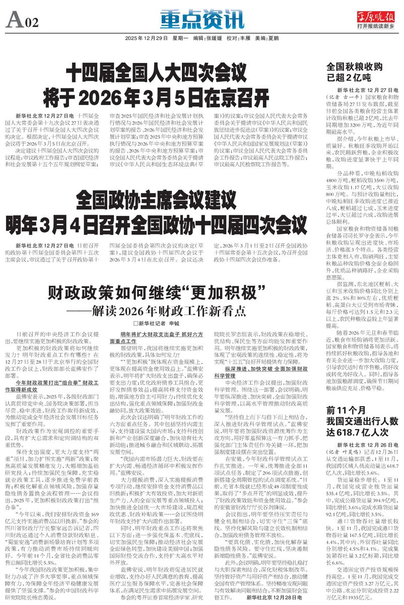 十四届全国人大四次会议 将于2026年3月5日在京召开
